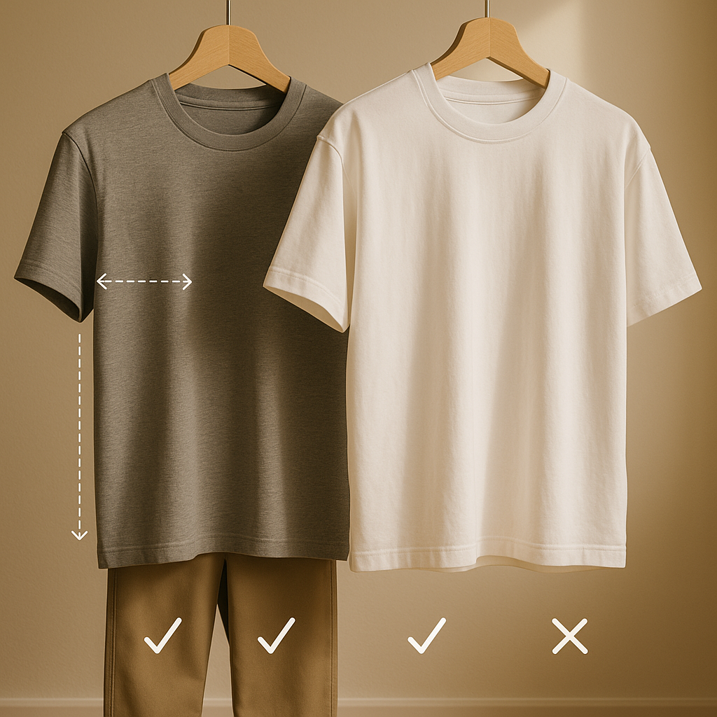 Længde er ofte forskellen på “velklædt” og “lidt off”. For kort kan få overkroppen til at se kompakt ud (og t-shirten kravler op), mens for lang kan få benene til at se kortere ud—særligt hvis du bruger løse bukser.